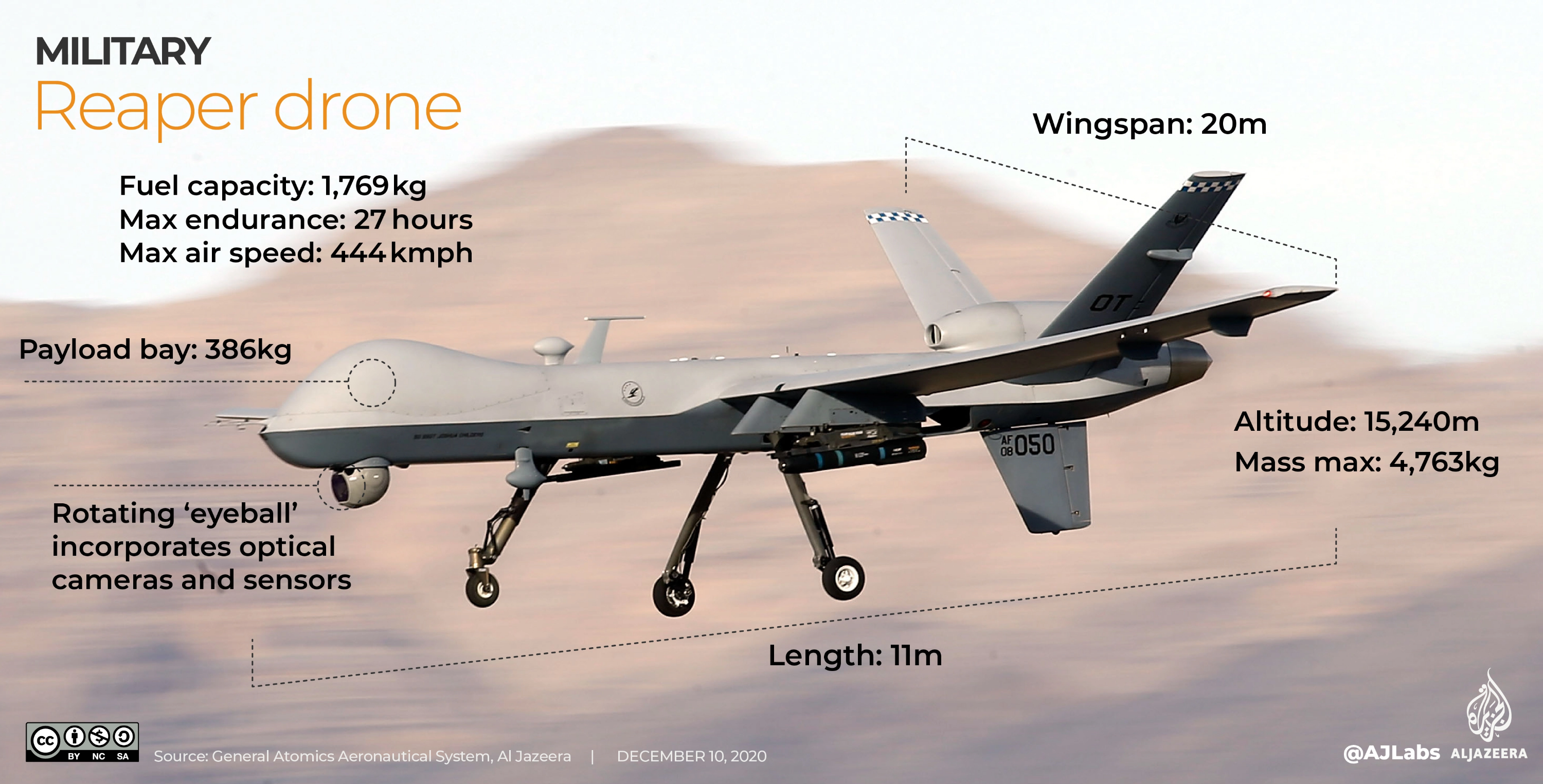The MQ-9 Reaper drone is valued at more than $30m, was equipped with high US spying technology, and was capable of striking military objectives.